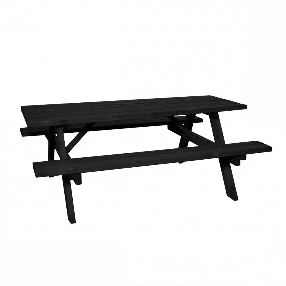 Bord-/bænksæt i trykimprægneret træ. sæder og bordplade i 42 mm tykkelse. Grundmalet sort.