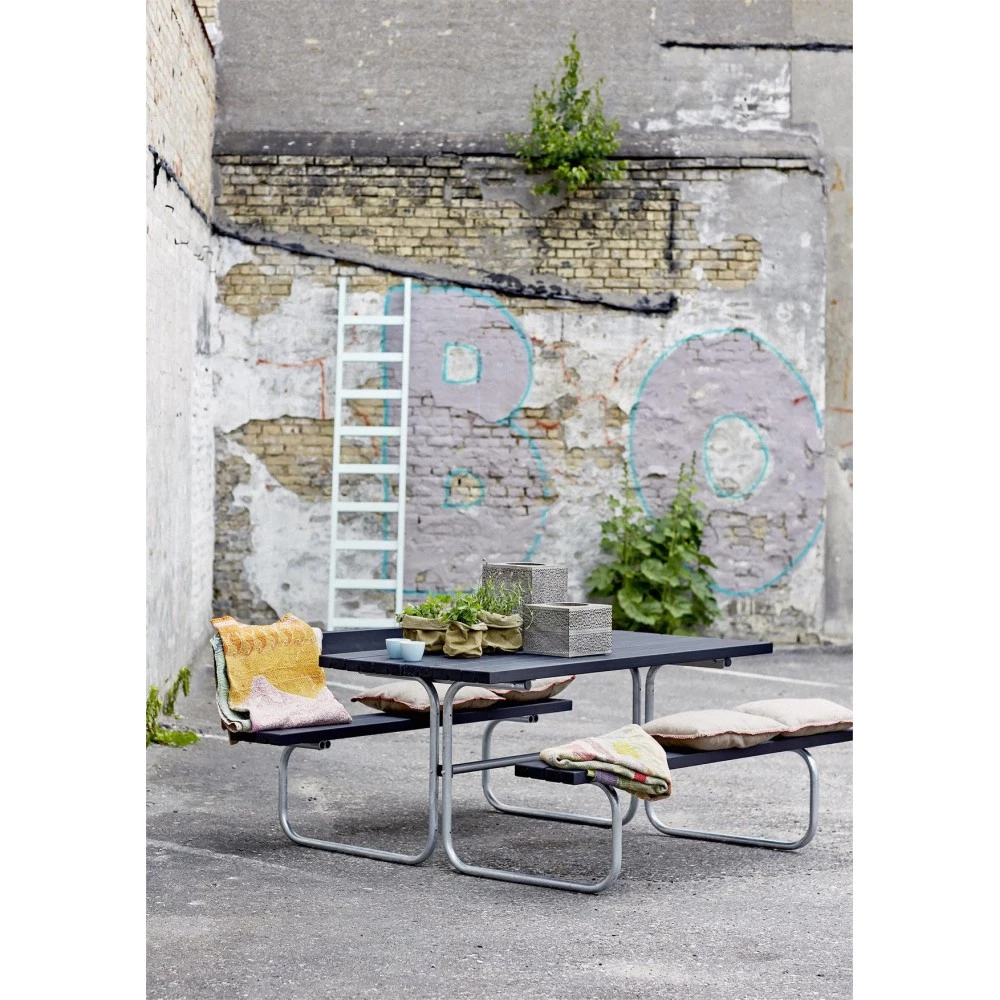 Bord og bænke hænger sammen i ét sæt og inviterer til skønne fællesstunder, hvad end det er romantisk stearinlyshygge eller en grillaften med hele familien.