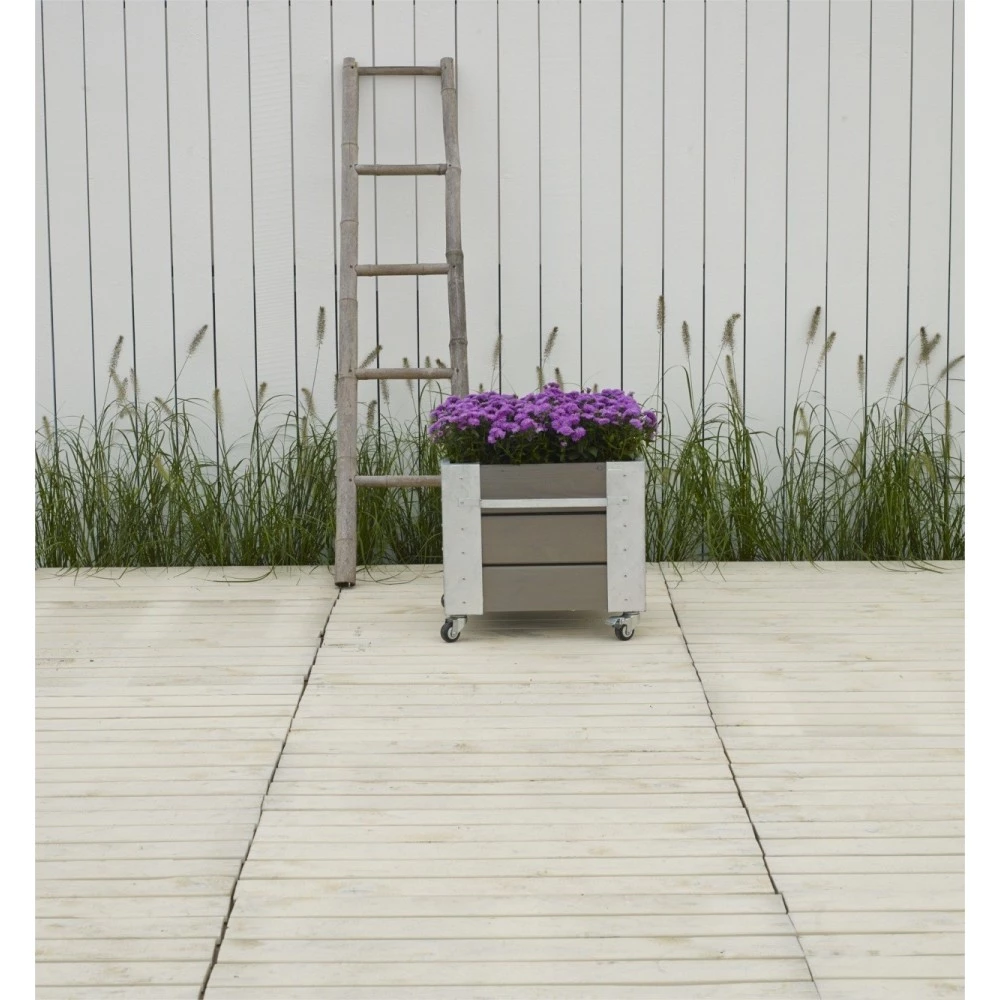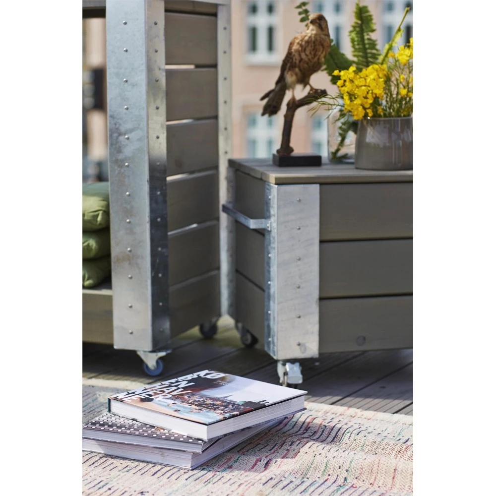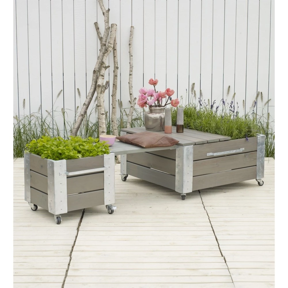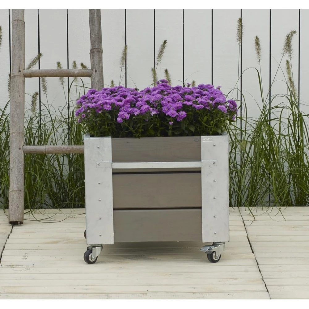 Cubic havekrukke i træ med stålhjørner – blomsterkasse med hjul